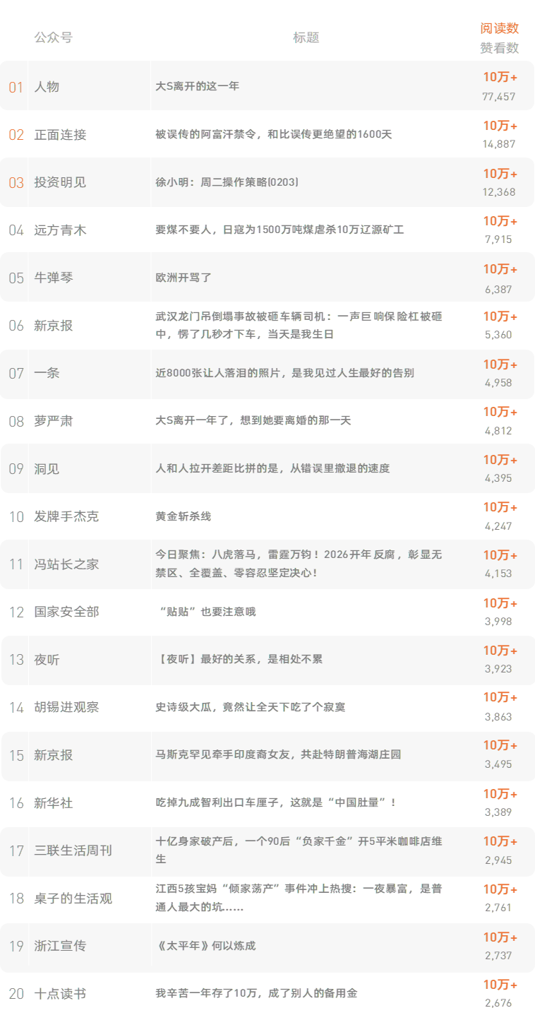 跳转原文请戳:《大S离开的这一年》新榜榜单小程序版正式上线,榜单想看就看,更多热门内容也可登录新榜网站www.newrank.cn进行查询,点击「阅读原文」查看新榜指数算法说明。新榜排行榜newranklist