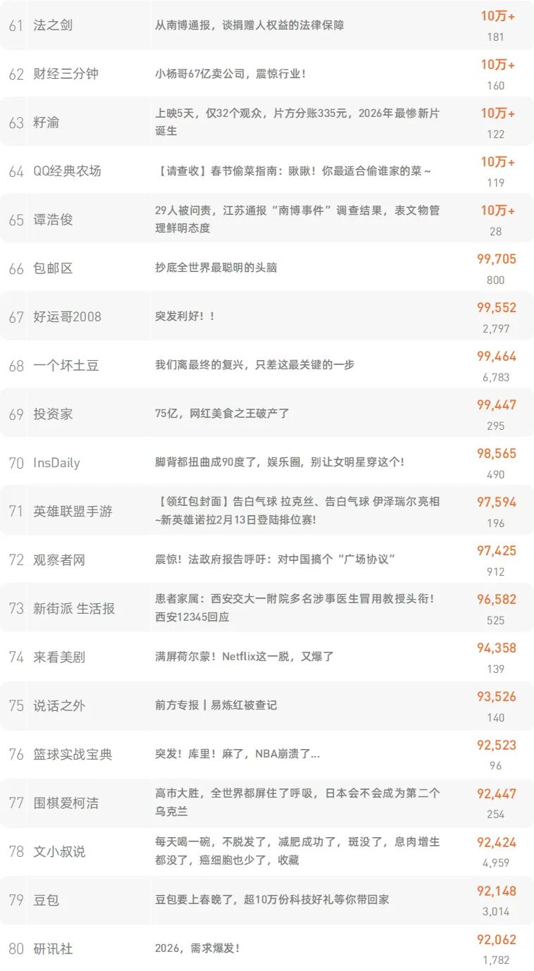 原文链接:扫尘日:年前断舍离,请扔掉这66件物品新榜榜单小程序版正式上线,榜单想看就看,更多热门内容也可登录新榜网站www.newrank.cn进行查询,点击「阅读原文」查看新榜指数算法说明。新榜排行榜newranklist