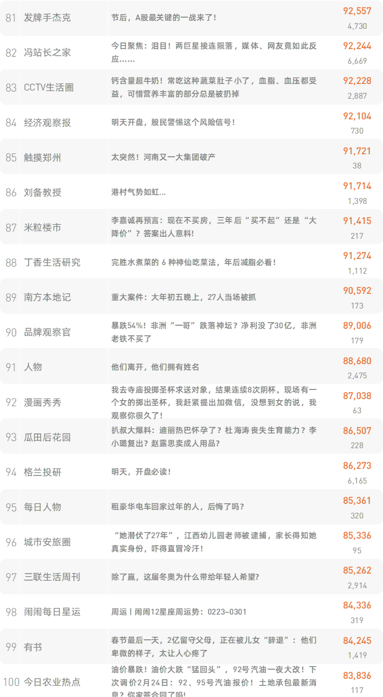 跳转原文请戳:《节后上班最好的打开方式:做到这10点,你就能顺风顺水》新榜榜单小程序版正式上线,榜单想看就看,更多热门内容也可登录新榜网站www.newrank.cn进行查询,点击「阅读原文」查看新榜指数算法说明。新榜排行榜newranklist