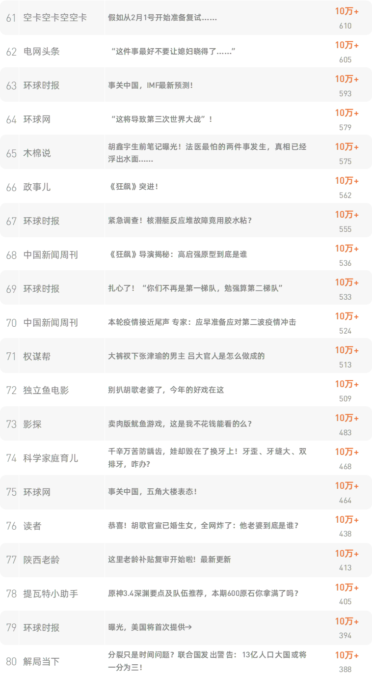 更多热门内容请登录新榜网站查询,新榜编辑器帮你一键导入。newrank.cn点击「阅读原文」查看新榜指数算法说明。