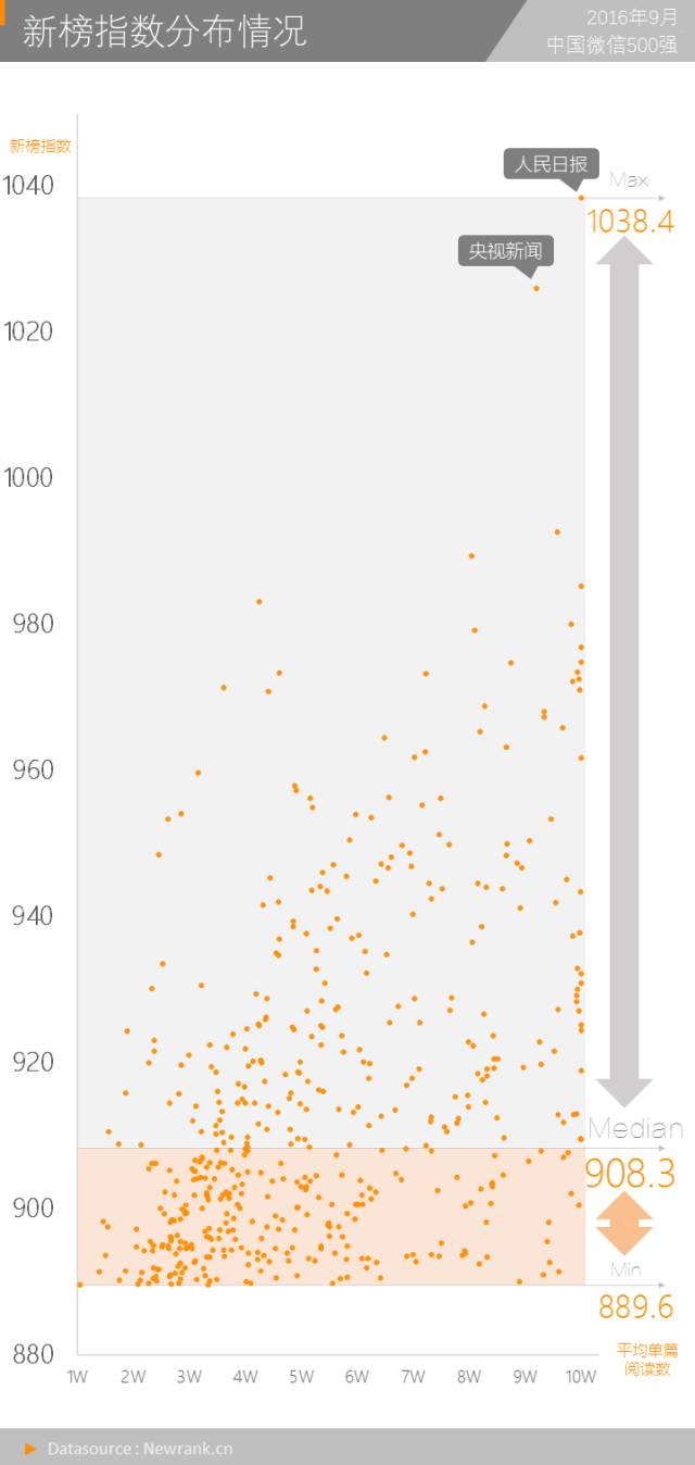 如下图所示,500强账号的新榜指数极差减少1.5个点,说明500强较上月分布更为集中。