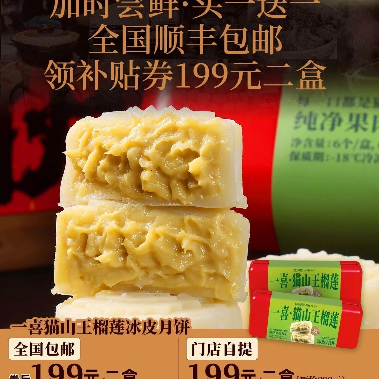 ![]() 【加时买一送一】全国包邮领券199元2盒,猫山王榴莲冰皮月饼送礼更有新意! | - | - | - | 12 |