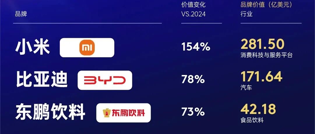 ![]() 2025凯度BrandZ最具价值中国品牌100强榜单公布,东鹏饮料连续第四年上榜,排名大幅跃升25位至第44名,品牌价值42.18亿美元,增速高达73%,位列增长榜单第三。#东鹏特饮#补水啦#东鹏饮料#东鹏大咖#品牌#价值 食品内参 发布时间2025/09/17 07:42:39 | 0 | 21 | - | 312 |