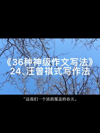 ![]() ![]() 怎样让作文写得淡而有味?《36种神级作文写法》之:汪曾祺式写作法#语文 #作文素材 #中小学教育 黑夜里的一束光 发布时间2026/01/09 10:03:42 | 121 | 1175 | 5714 | 1.9w | 更多 |