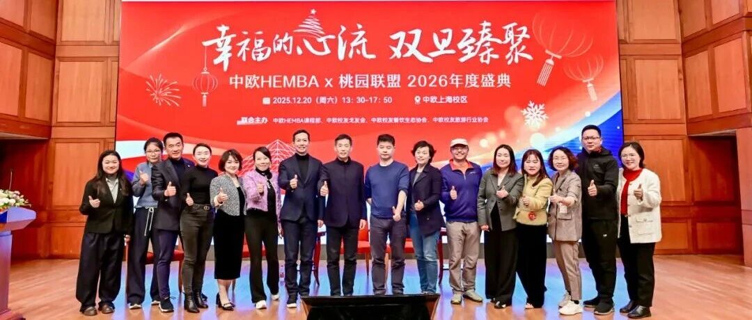 ![]() 幸福的心流·双旦臻聚丨中欧HEMBA×桃园联盟年度盛典圆满落幕 中欧校友餐饮生态协会 发布时间2025/12/25 12:08:19 | - | - | - | 3 | 更多 |