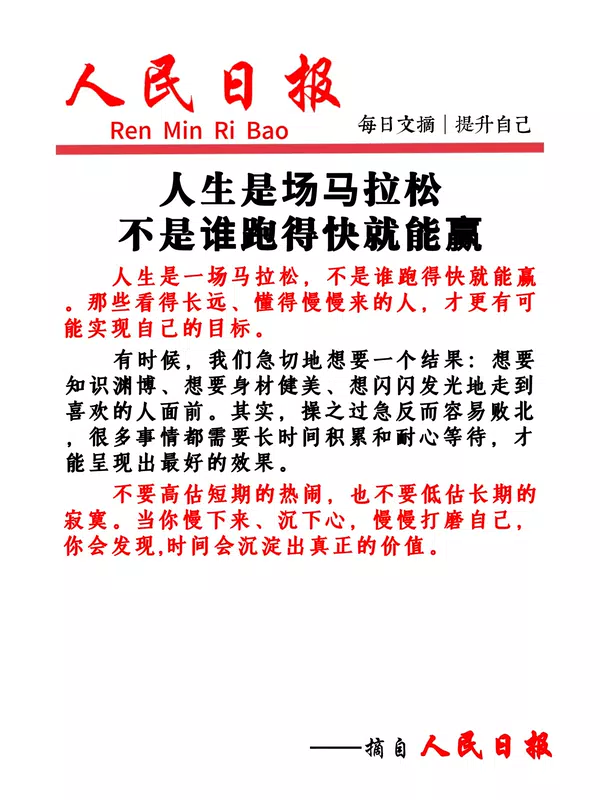 ![]() 人民日报摘抄#人民日报哲理 #人生马拉松 #时间的价值 #每日金句 ![]() 胖豆 发布时间2026/01/07 07:28:25 | 4 | 0 | 0 | 10 | 更多 |