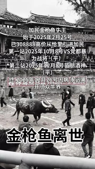 #加民金枪鱼 #斗牛精神 ![]() 贵州斗牛(黔) 发布时间2025/12/26 08:02:07 | 8 | 54 | 43 | 671 | 更多 |