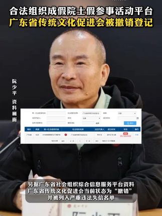 4、成假院士、假参事活动平台,广东省传统文化促进会被撤销登记;