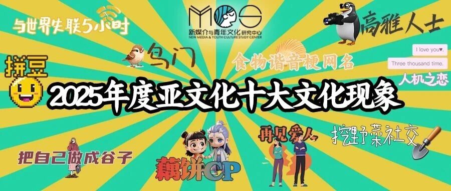 ![]() 2025年度青年亚文化十大文化现象 新媒介与青年文化 发布时间2026/01/07 11:00:56 | - | - | - | 68 | 更多 |