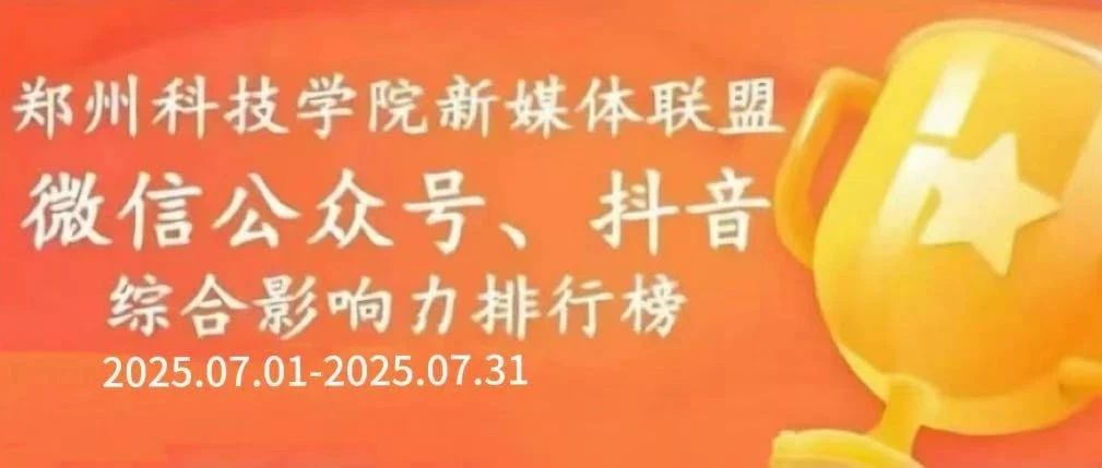 ![]() 月榜|郑州科技学院各单位2025年7月月榜「微信公众号」「抖音」「微博」「热文TOP10」综合力排行榜出炉! 印象郑科 发布时间2025/08/25 13:48:07 | - | - | - | 3 |