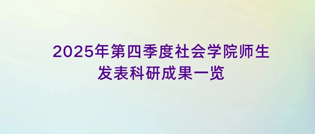 ![]() 成果速递 | 2025年第四季度社会学院师生发表科研成果一览 武大社会学 发布时间2025/12/30 08:39:45 | - | - | - | 21 | 更多 |