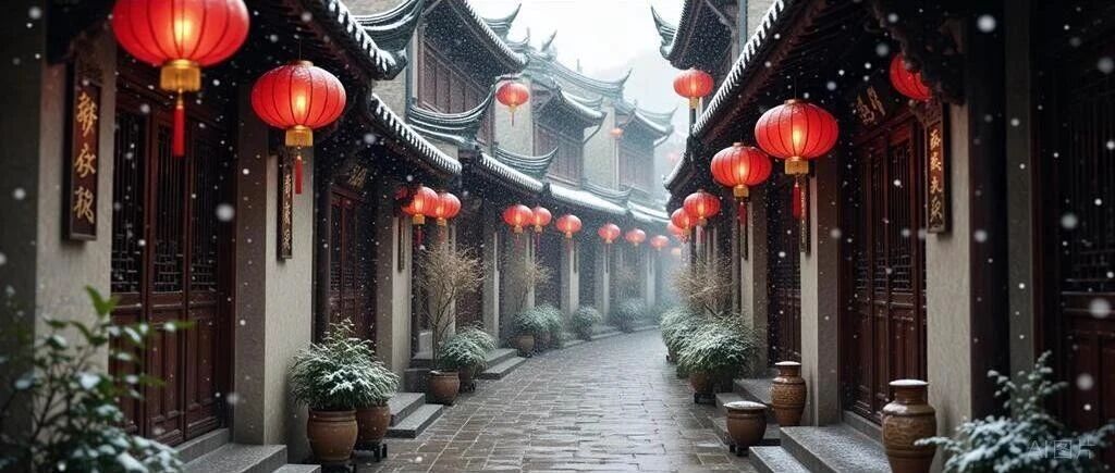 双亲倚户应凝盼,旧宅围炉忆暖光。