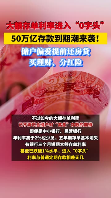 ![]() ![]() 大额存单利率进入“0字头”!50万亿存款到期潮来袭,储户偏爱提前还房贷、买理财、分红险!#存款 中国经济网 发布时间2026/01/10 12:10:01 | 1546 | 4575 | 2496 | 1.3w | 更多 |