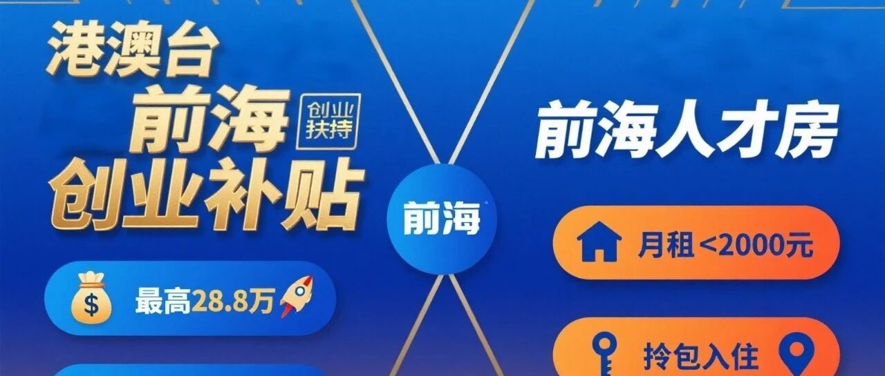 ![]() 港澳台前海创业补贴x前海人才房,【租金补贴+场地补贴+就业补贴】深圳港澳台创业者千万不能错过!白领30w+! 创业小助手-小石头 发布时间2025/09/03 04:18:21 | - | - | - | 0 |