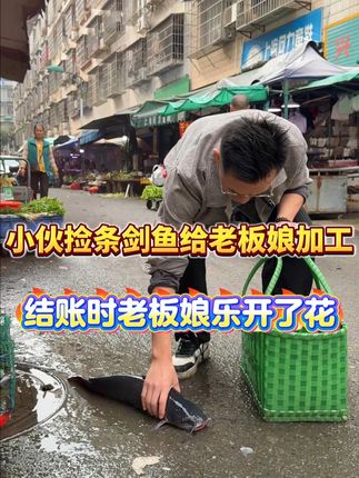 ![]() ![]() 小伙叫老板娘加工条剑鱼 结账时老板娘却笑开了花