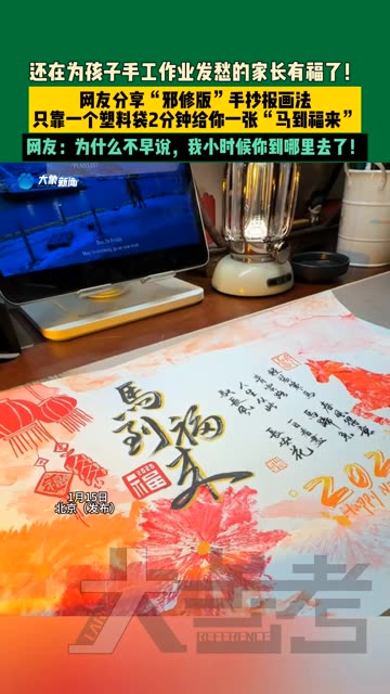 ![]() ![]() 1月15日,北京(发布)。还在为孩子手工作业发愁的家长有福了!网友分享“邪修版”手抄报画法,只靠一个塑料袋2分钟给你一张“马到福来”。网友:为什么不早说,我小时候你到哪里去了!#不一样的中国节气 #中国节气大寒篇 #二十四节气让生活更美好 ![]() 河南民生频道大参考 发布时间2026/01/16 01:18:51 | 208 | 4925 | 1.9w | 4.6w | 更多 |