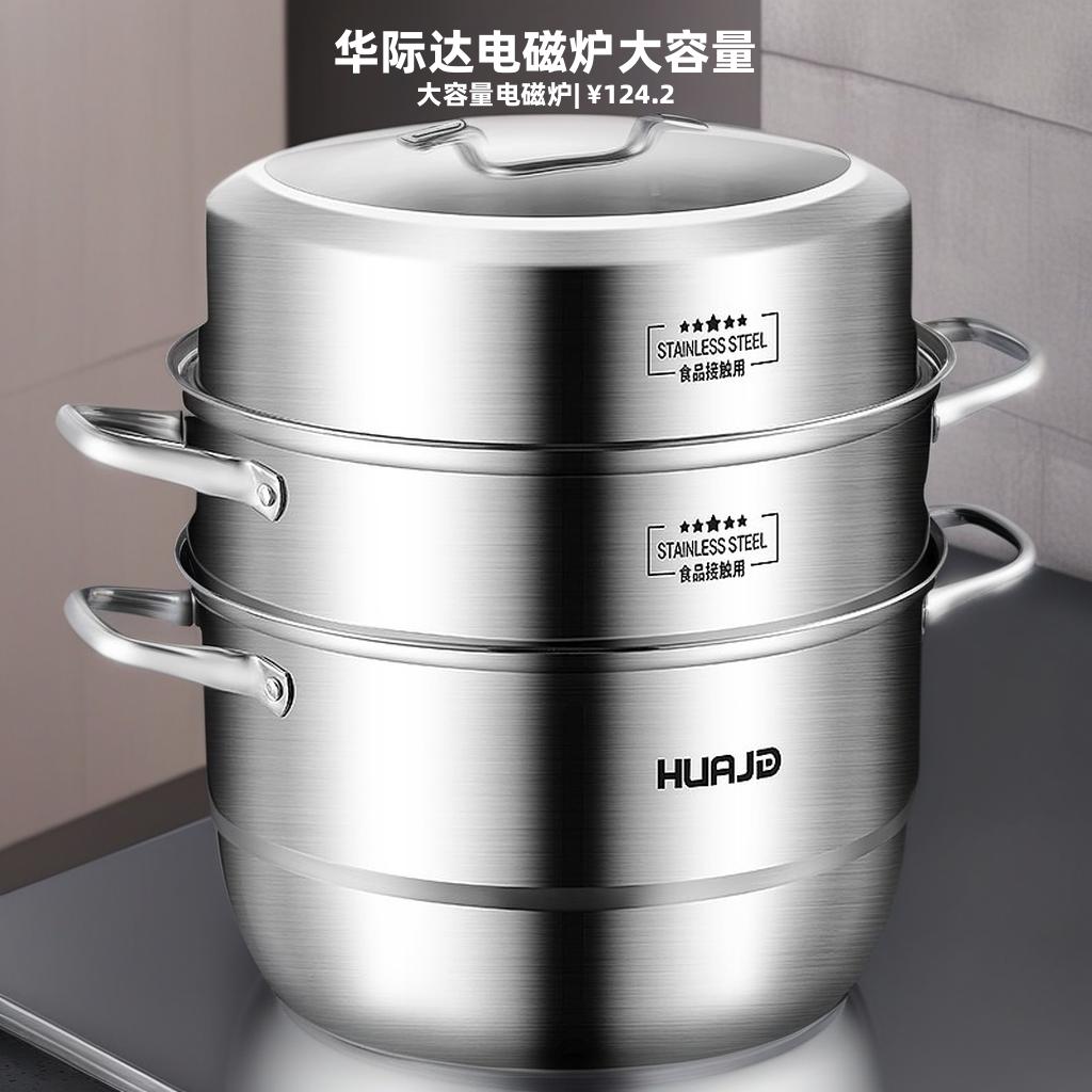 30厘米 28/32cm直径 双层&三层家用不锈钢蒸锅 蒸包子蒸馒头溜馍炖汤煮面 蒸馍钢筋锅汤锅电磁炉煤气灶锅具