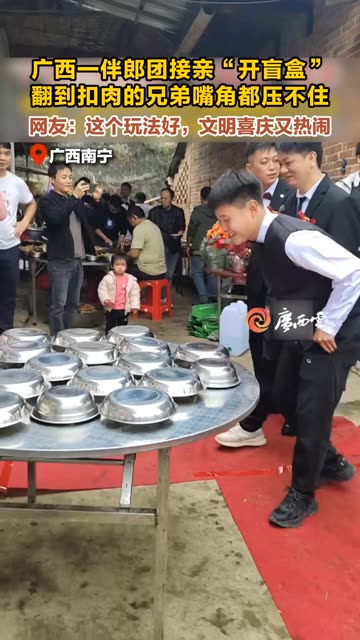 ![]() ![]() 广西一伴郎团接亲“开盲盒”,翻到扣肉的兄弟嘴角都压不住。网友:这个玩法好,文明喜庆又热闹。(来源:广西云-南国早报) #广西 #结婚 #接亲 ![]() 广西日报 发布时间2025/12/25 00:30:33 | 921 | 4083 | 1334 | 1.5w | 更多 |
