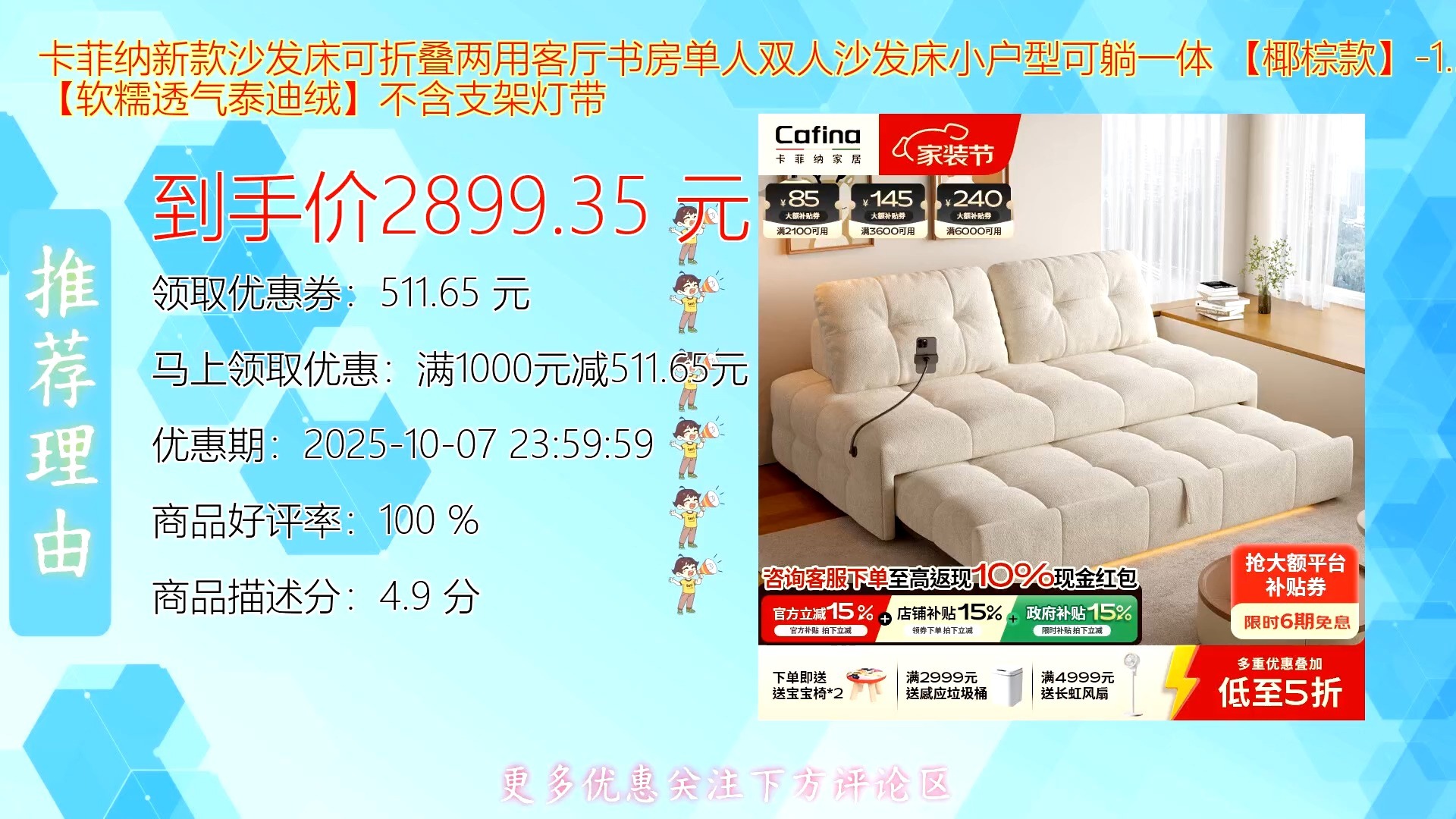 ![]() ![]() 卡菲纳新款沙发床可折叠两用客厅书房单人双人椰棕款米色软糯透气,小户型福音,舒适承托,多功能设计节省空间,满足日常坐卧需求,轻松打造惬意生活空间 是丽大丽啊 发布时间2025/09/10 00:16:24 | 1 | 0 | 0 | 0 |