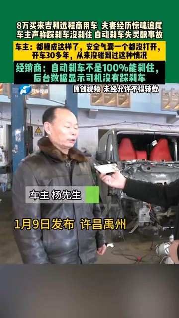 ![]() ![]() 1月9日发布,许昌禹州,8万买来吉利远程商用车,夫妻经历惊魂追尾;车主:遇到红灯踩刹车,刹不住,车辆自动刹车功能也失灵,最后追尾大货车,车辆已经撞的面目全非,结果安全气囊一个都没打开,开车30多年了,从来没遇到过这种问题,真是吓得没了灵魂;经销商:自动刹车功能不是100%有效,车辆后台数据检测显示,司机没有踩刹车。 ![]() 河南民生频道大参考 发布时间2026/01/09 13:27:38 | 546 | 223 | 369 | 3398 | 更多 |