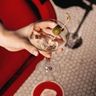 ① 将鸡尾酒杯放入冰箱或加入冰块进行冰镇备用。