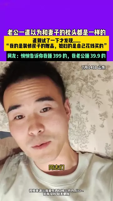![]() ![]() 第67集|7月14日,山东,老公一直以为和妻子的枕头都是一样的,直到试了一下才发现......“我的是装修房子的赠品,媳妇的是自己花钱买的”,网友:悄悄告诉你我睡 399 的,我老公睡 39.9 的。#不一样的中国节气 #中国节气大暑篇 ![]() 多米多米 发布时间2026/01/02 02:21:46 | 288 | 515 | 241 | 3636 | 更多 |