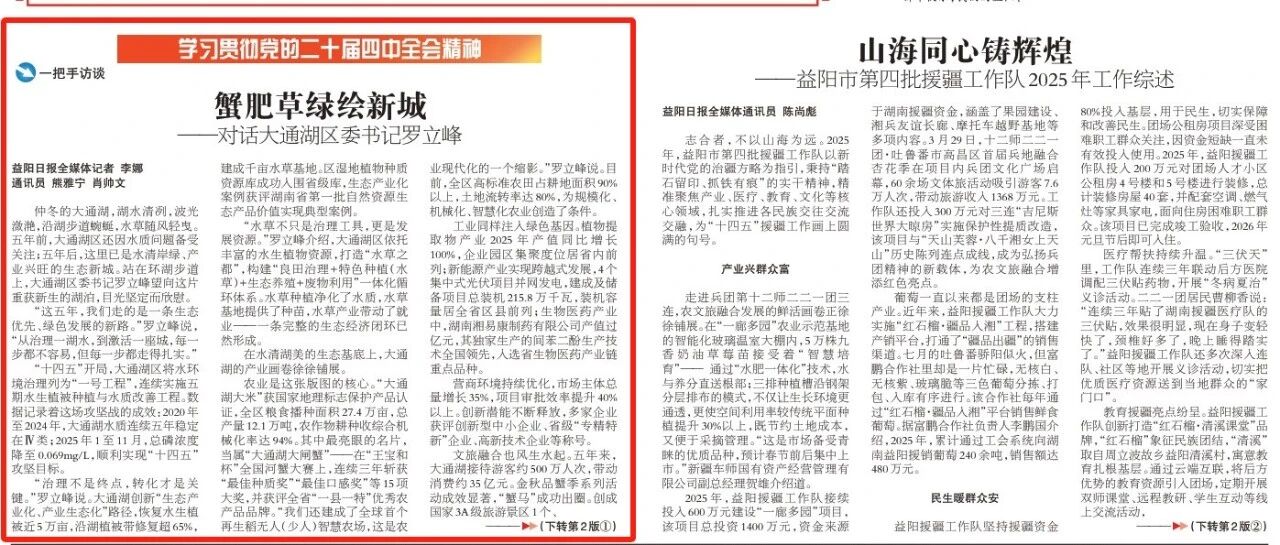 ![]() 益阳日报头版丨蟹肥草绿绘新城——对话大通湖区委书记罗立峰 大通湖发布 发布时间2026/01/04 07:52:36 | - | - | - | 5 | 更多 |