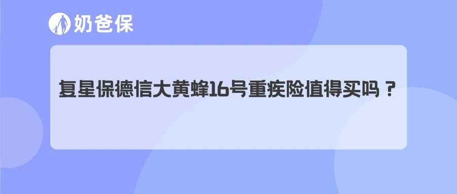 ![]() 复星保德信大黄蜂16号重疾险值得买吗? 奶爸保课堂 发布时间2026/01/13 12:01:04 | - | - | - | 5 | 更多 |