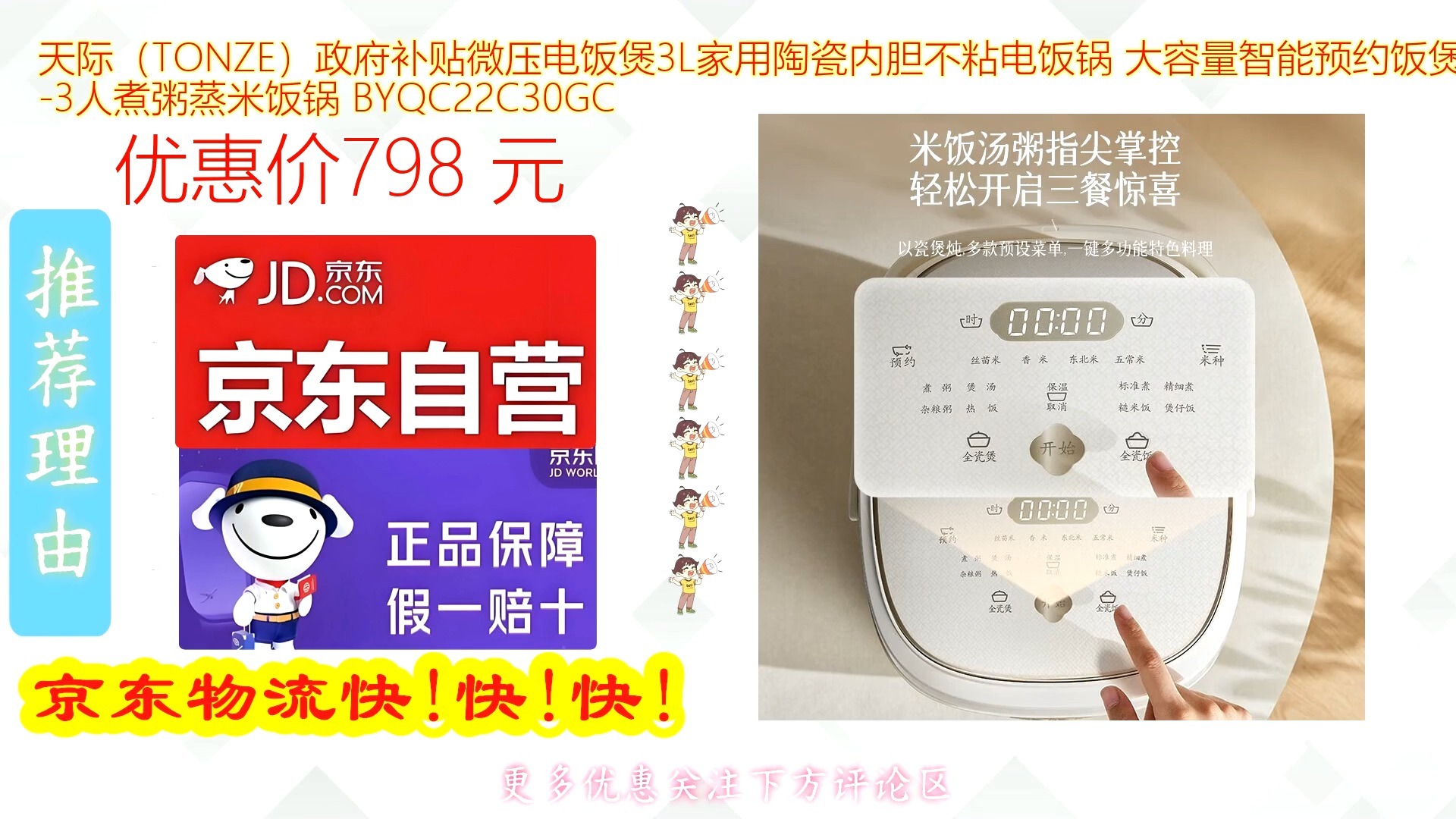![]() ![]() 天际_TONZE_政府补贴微压电饭煲3L家用陶瓷内胆不粘电饭锅 大容量智能预约饭煲3人煮粥蒸米饭 二塔好物 发布时间2025/12/19 16:51:07 | 1 | 0 | 0 | 0 | 更多 |
