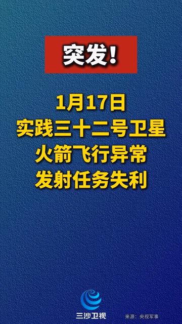 ![]() ![]() 突发!1月17日实践三十二号卫星,火箭飞行异常,发射任务失利(央视军事) ![]() 三沙卫视 发布时间2026/01/17 03:14:46 | 3751 | 1658 | 9989 | 4.2w | 更多 |