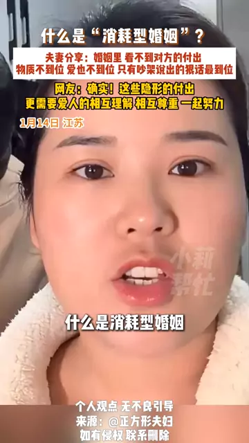 ![]() ![]() 1月14日,江苏,什么是“消耗型婚姻”?夫妻分享:婚姻里,看不到对方的付出 ,物质不到位,爱也不到位,只有吵架说出的狠话最到位,网友:确实!这些隐形的付出,更需要爱人的相互理解,相互尊重,一起努力。 #不一样的中国节气 #中国节气大寒篇 #二十四节气让生活更美好 ![]() 河南民生频道小莉帮忙 发布时间2026/01/16 01:04:06 | 6007 | 4.5w | 2.9w | 14.2w | 更多 |