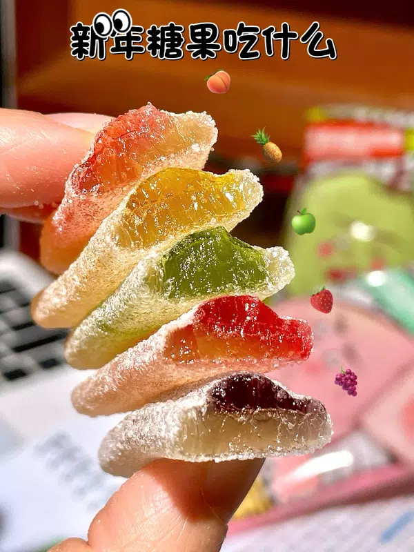 清甜的白桃香味搭配着一层酸酸的糖砂,吃上一颗立马来神,吃完嘴里都是满满的果香味~