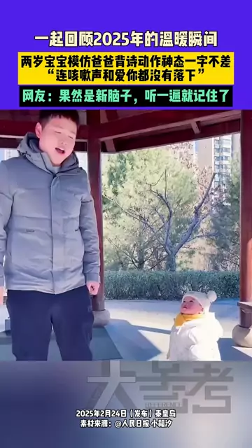 ![]() ![]() 一起回顾2025年的温暖瞬间。两岁宝宝模仿爸爸背诗动作神态一字不差,“连咳嗽声和爱你都没有落下。”网友:果然是新脑子,听一遍就记住了。 #2026新年快乐#不一样的中国节气#中国节气小寒篇#二十四节气让生活更美好 ![]() 河南民生频道 发布时间2025/12/29 09:23:41 | 3275 | 3.5w | 1.1w | 27.5w | 更多 |