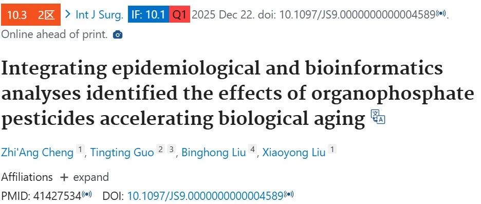 ![]() 文献阅读|Q1 IF=10.1 NHANES+网络毒理学+生信+实验:流行病学与生物信息学分析揭示有机磷农药加速生物衰老的作用 林林的读书杂记 发布时间2025/12/29 23:41:24 | - | - | - | 3 | 更多 |
