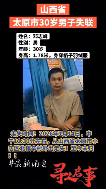![]() ![]() 平平安安回家🙏🙏 #寻人启事 #求助好心人 #紧急寻人 #寻人找人 ![]() 离🔥火 发布时间2026/01/14 11:28:15 | 68 | 322 | 143 | 1784 | 更多 |