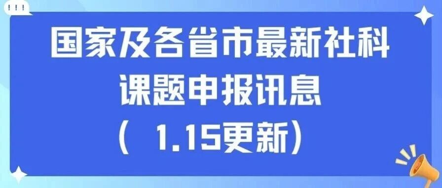 ![]() 国家及各省市最新社科课题申报讯息(1.15更新) 博学体育科研 发布时间2026/01/15 02:26:02 | - | - | - | 5 | 更多 |