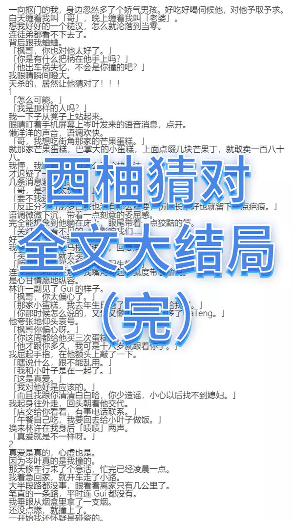 #西柚猜对 #小西柚猜对说2 #岑枫林许岑叶已完结 #西柚猜对大结局 西柚猜对3后续已完结 西柚猜对小说完结侠 ![]() 夜安心 发布时间2026/01/16 15:49:49 | 0 | 1 | 0 | 0 | 更多 |