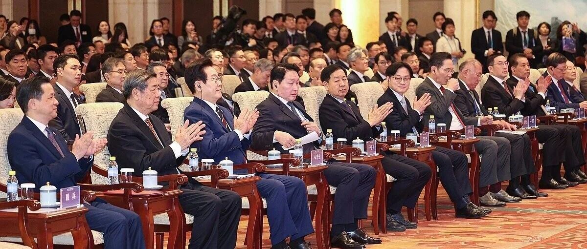 韩国总统府青瓦台当天发布出席论坛的两国企业代表名单。据介绍,韩方有三星电子会长李在镕、SK集团会长崔泰源、现代汽车会长郑义宣、LG集团会长具光谟、POSCO集团会长张仁和、GS集团会长许兑秀、LS集团会长具滋殷、希杰(CJ)集团会长孙京植等人出席;中方有中国贸易促进委员会会长任鸿斌、中石化集团董事长侯启军、中国能源建设集团董事长倪真、中国工商银行董事长廖林、TLC科技集团董事长李东生、宁德时代董事长曾毓群等人与会。