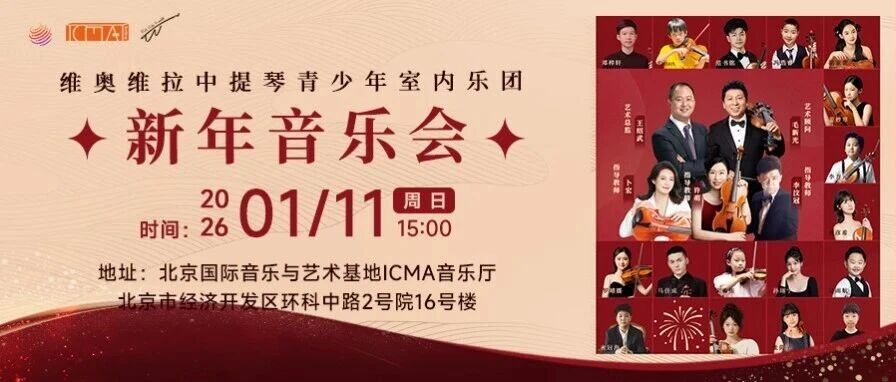 ![]() 2026新年音乐会|维奥维拉中提琴青少年室内乐团首批学员学期演出即将呈现 北京国际音乐与艺术基地ICMA 发布时间2026/01/08 14:58:41 | - | - | - | 22 | 更多 |