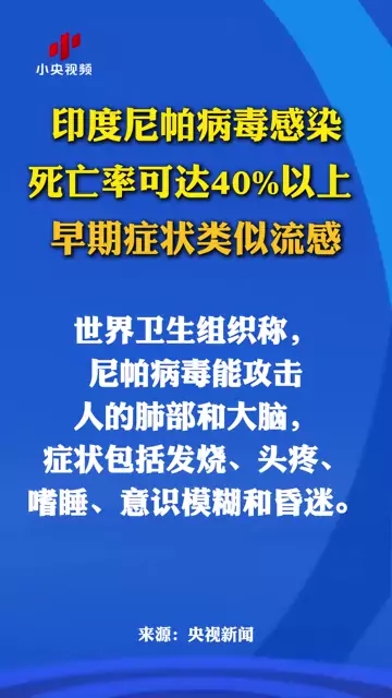 ![]() ![]() 印度尼帕病毒感染死亡率可达40%以上 早期症状类似流感 #小央看天下 ![]() 央视网 发布时间2026/01/26 08:10:27 | 3295 | 1.3w | 4174 | 19.1w | 更多 |
