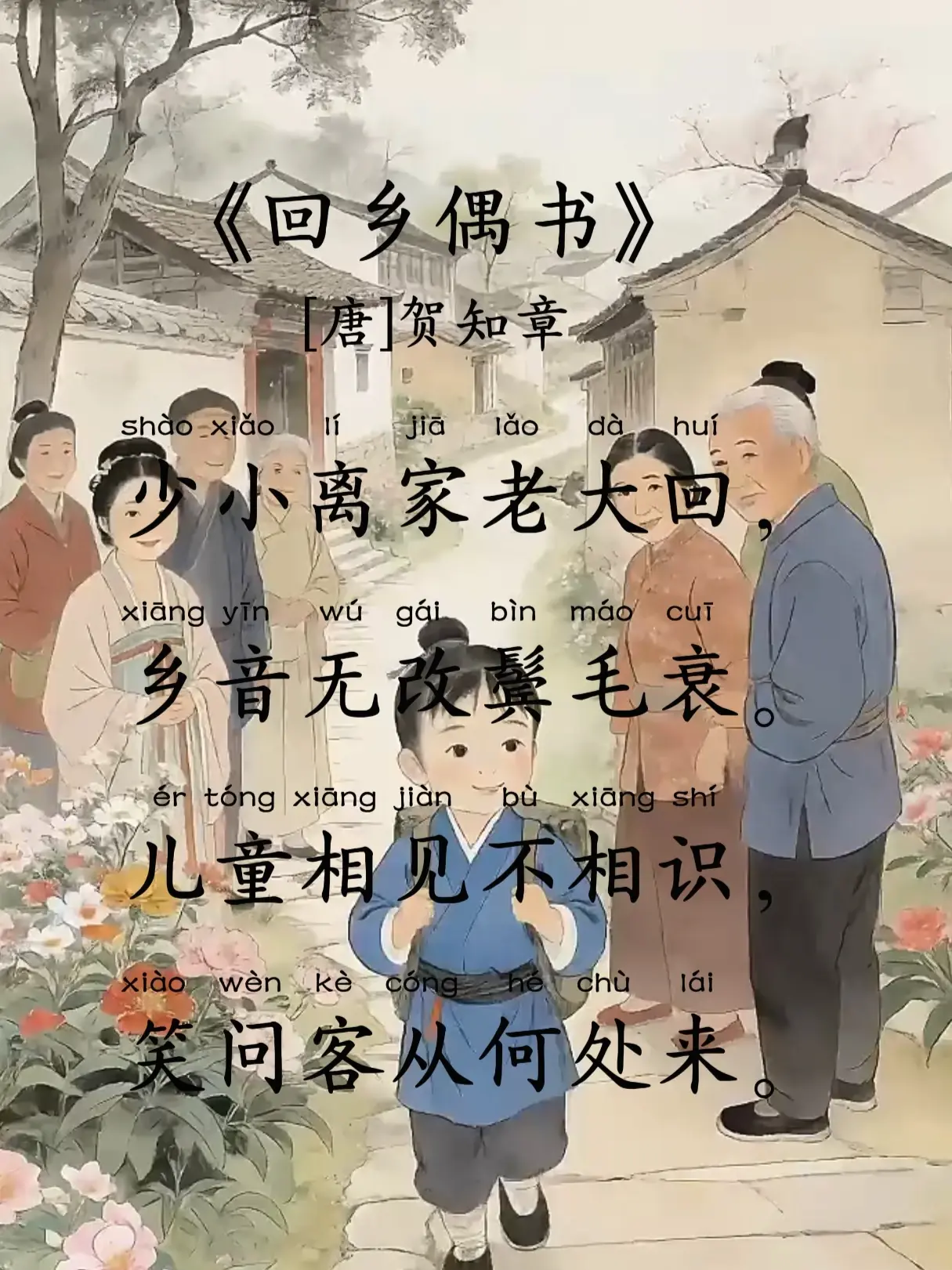 ![]() ![]() 小学生必背古诗词之唐诗《回乡偶书》 每日学一首古诗词,幼儿跟读,唐诗启蒙