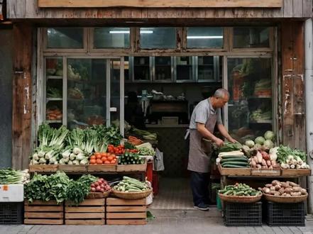 普通菜店秒变网红打卡点﹣-推开门是新鲜到滴水的菜,一抬头是能当背景板的巨型蔬菜装饰,买菜顺便拍组生活感大片,烟火气+网红感的反差直接拿捏!