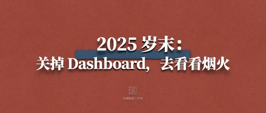 ![]() 2025 岁末:关掉 Dashboard,去看看烟火 拾穗数据工作室 发布时间2025/12/31 11:37:47 | - | - | - | 1 | 更多 |