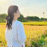 米白连衣裙,头发散着,拎着草莓袋