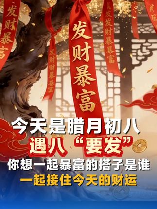 ![]() 今天是 #腊月初八 ,遇八“要发”,你想一起暴富的搭子是谁,一起接住今天的财运! ![]() 中国新闻网 发布时间2026/01/25 16:00:00 | 4.1w | 6537 | 7094 | 106w | 更多 |