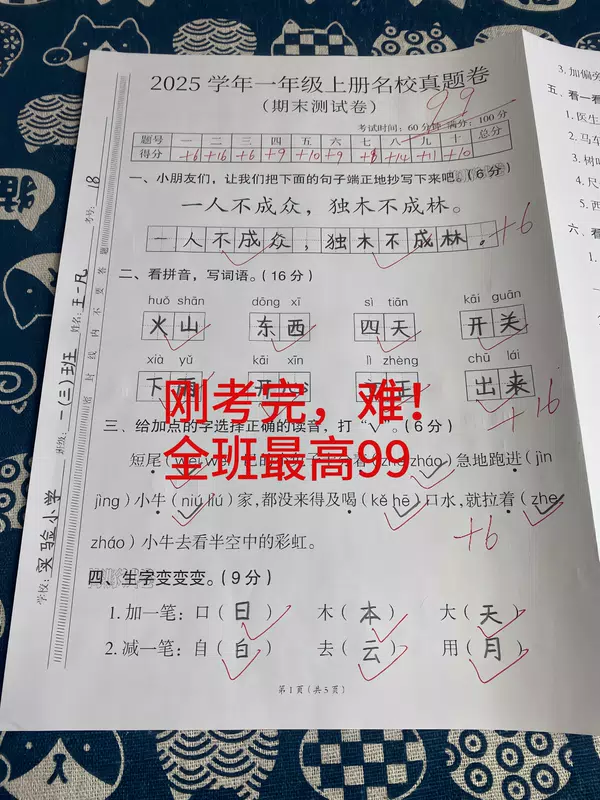 #一年级语文上册 #期末考试 #期末测试卷 #一年级上册语文期末测试卷 #期末倒计时 一年级赫赫同学 发布时间2026/01/01 12:54:10 | 203 | 4379 | 3631 | 2694 | 更多 |