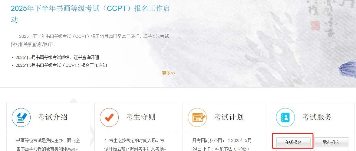 ![]() 2025年11月教育部教育考试院书画等级考试(CCPT)报考简章 CCPT书画等级考试 陕西 发布时间2025/09/10 02:42:12 | - | - | - | 43 |