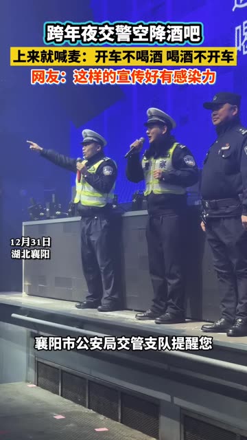 ![]() ![]() 跨年夜,交警空降酒吧,上来就喊麦:开车不喝酒,喝酒不开车。网友:这样的宣传好有感染力 #暖心守护 ![]() 襄阳交警 发布时间2026/01/01 05:25:14 | 4869 | 2.2w | 6371 | 114w | 更多 |