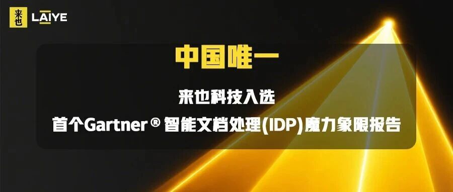 ![]() 中国唯一|来也科技入选首个Gartner®智能文档处理(IDP)魔力象限报告 来也科技 发布时间2025/09/10 11:29:57 | - | - | - | 21 |
