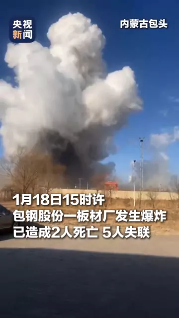 ![]() ![]() 包钢一板材厂发生爆炸事故,截至17时30分,已致2人死亡5人失联。 央视新闻 发布时间2026/01/18 12:45:07 | 1.4w | 4.4w | 1.1w | 28.8w | 更多 |